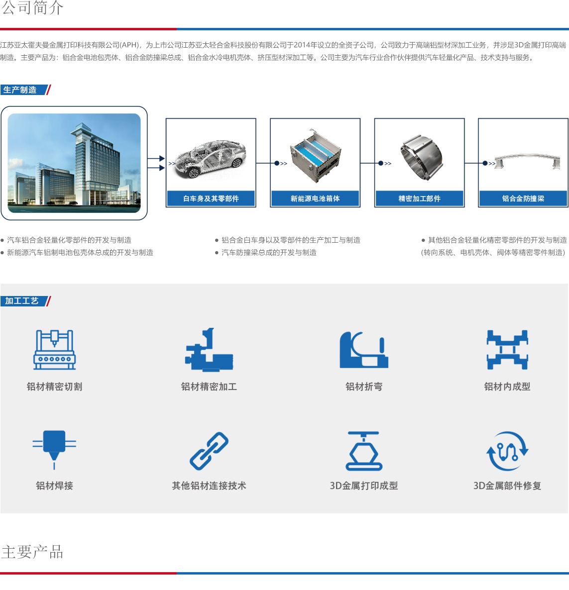 亞太科技始終致力于為客戶提供更高性能、更優(yōu)品質(zhì)的鋁材產(chǎn)品及增值制造服務(wù)。通過在材料、工藝、裝備、應(yīng)用方面不斷創(chuàng)新,在過程、品質(zhì)、交付方面持續(xù)改進(jìn),亞太科技用30年時(shí)間淬煉中國鋁工業(yè)優(yōu)質(zhì)品牌,成為全球汽車行業(yè)鋁材重要供應(yīng)商及航空航天、軌道交通、海洋工業(yè)等其他工業(yè)領(lǐng)域鋁材優(yōu)質(zhì)供應(yīng)商。